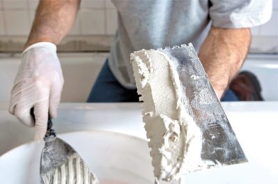 Il suffit de diluer une petite partie et de passer à la suivante uniquement si le scellant précédent ne suffit pas. Après avoir créé la couche d'imperméabilisation, vous pouvez commencer à appliquer le mastic lui-même. Il est préférable d'utiliser une spatule ou au moins un couteau ordinaire pour cela.