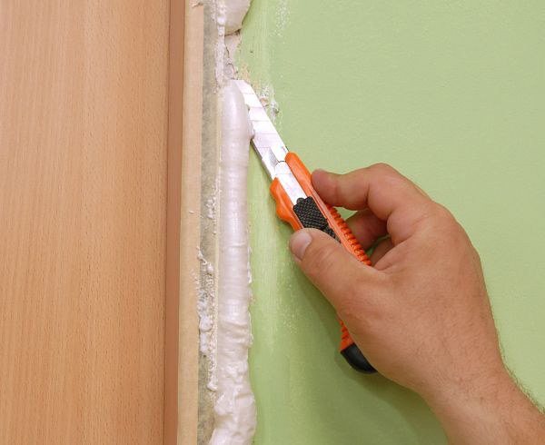 Après cela, il faudra couper tout excès de mousse qui dépasse, et il est souhaitable de le faire aussi facilement que possible. Mais si vous souhaitez sceller les coutures avec du plâtre, il est recommandé de ne pas couper la mousse plus profondément que quelques millimètres.