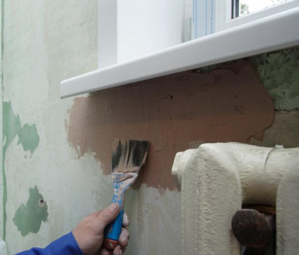 Au cours de cette procédure, il vaut la peine de se plonger un peu dans la base. La surface doit être nettoyée des débris et recouverte d'une couche d'apprêt. Lorsque le produit appliqué est sec, vous pouvez appliquer la solution de mastic, mais pas en couche épaisse. Après solidification complète, le mélange de construction préparé est à nouveau appliqué.