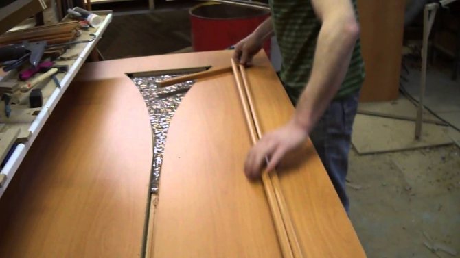Ces matériaux ne sont pas le meilleur décor pour la porte, par conséquent, à l'avenir, vous devrez à nouveau effectuer des réparations et insérer un nouveau verre dans l'ouverture.