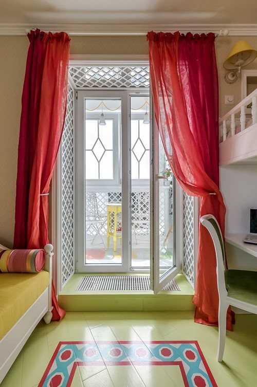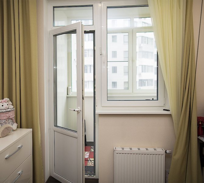 Dans les pièces avec de hauts plafonds (maisons staliniennes, cottages) et un grand balcon ouvrant, les blocs peuvent être constitués de deux parties: