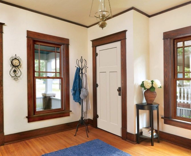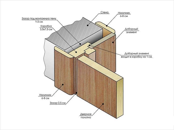 Par exemple, pour un cadre en bois et une toile, seules les garnitures en bois conviennent. Dans ce cas, il est important que la texture et la couleur de toutes les parties du cadre de la porte correspondent parfaitement.
