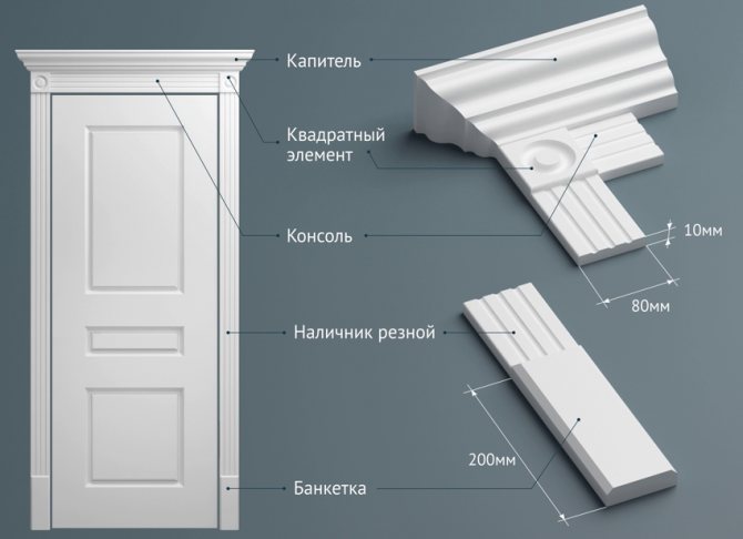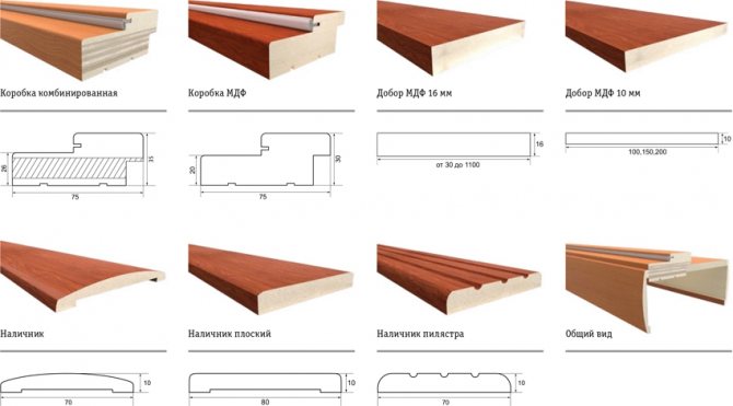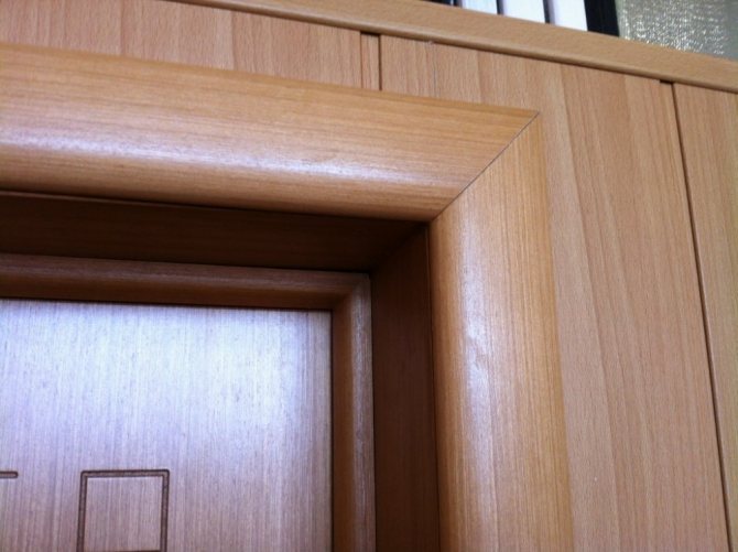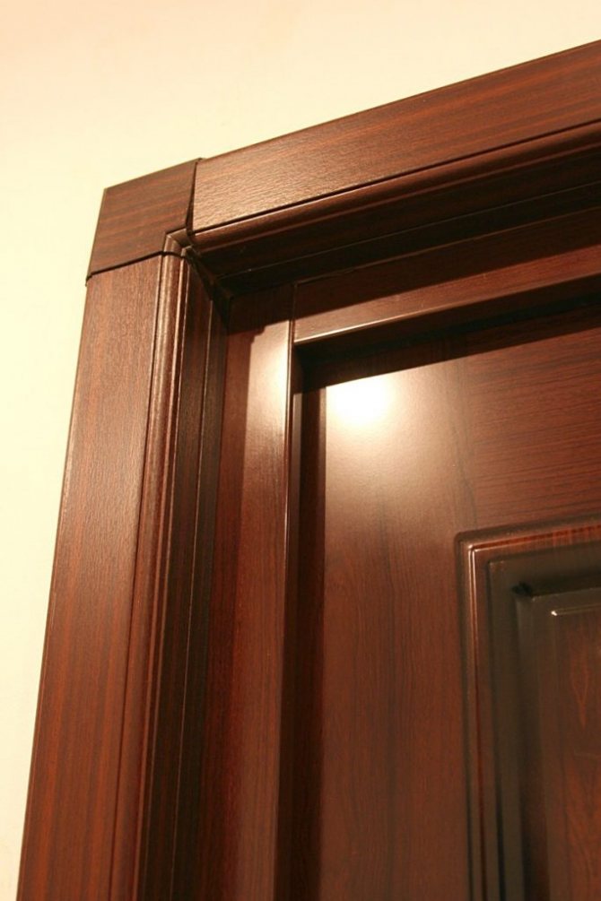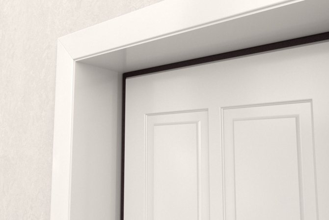 Structurellement, les plateaux sur la porte, photo, représentent la bordure du cadre de support sous la forme d'une bande étroite, dépassant généralement au-dessus du plan du mur et de la surface extérieure du cadre de la porte.