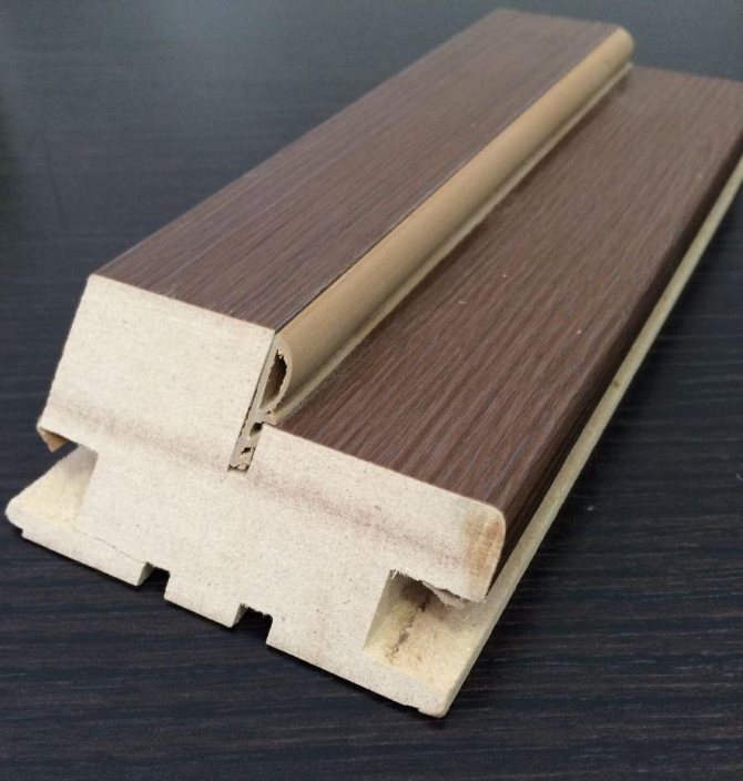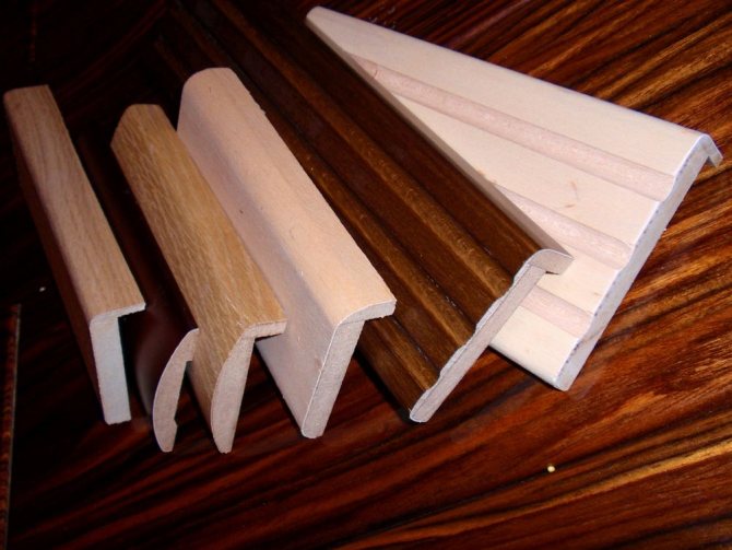 L'élément décoratif appliqué ressemble à une bande polie, en bois ou en MDF ordinaire dans sa structure. Une légère différence entre un boîtier indépendant et une planche classique est la présence d'une rainure de centrage au dos de la surcouche décorative.