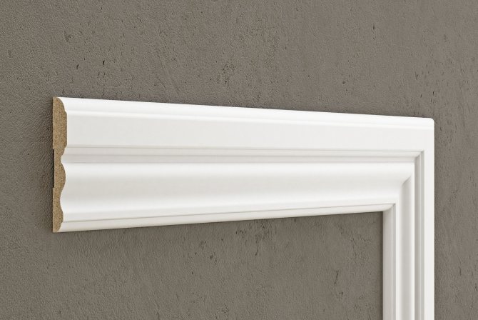 La plupart des revêtements décoratifs du cadre de porte intérieur sont en polychlorure de vinyle. La largeur des moulures PVC correspond aux dimensions des moulures bois. Le plus souvent, un décor en plastique est utilisé avec une largeur de 70 mm et 80 mm.