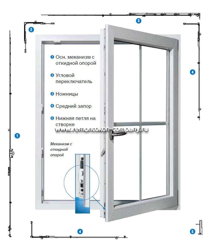 Des ferrures pivotantes et oscillo-battantes sont installées sur les fenêtres et les portes-fenêtres. Avec son aide, vous pouvez ouvrir une fenêtre ou une porte (position de pivot) ou la mettre sur l'inclinaison (position d'inclinaison), limitée par la course des ciseaux. En règle générale, lors de la fermeture d'un ouvrant (porte) au moyen de ferrures, il est nécessaire de vaincre la résistance du joint.