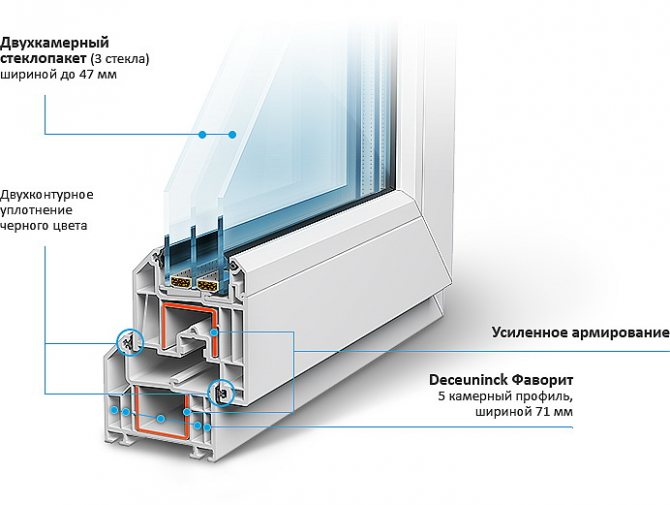 Toutes les autres caractéristiques principales de Favorite Platinum ne diffèrent pas des propriétés des profilés à 5 chambres décrits ci-dessus avec une profondeur d'installation de 71 mm.