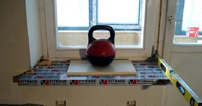 - Nous le plaçons à la fenêtre, mettons des blocs de bois, nivelons le plan horizontalement et le «saisissons» avec des vis autotaraudeuses aux endroits où il est possible de le faire.