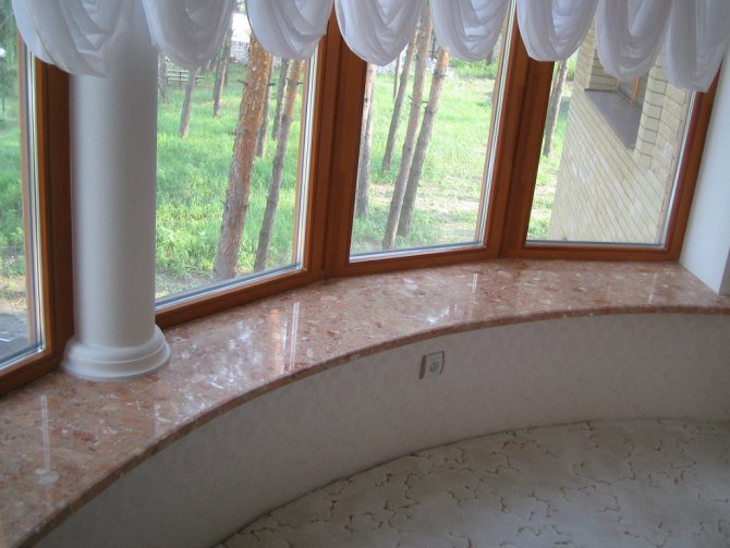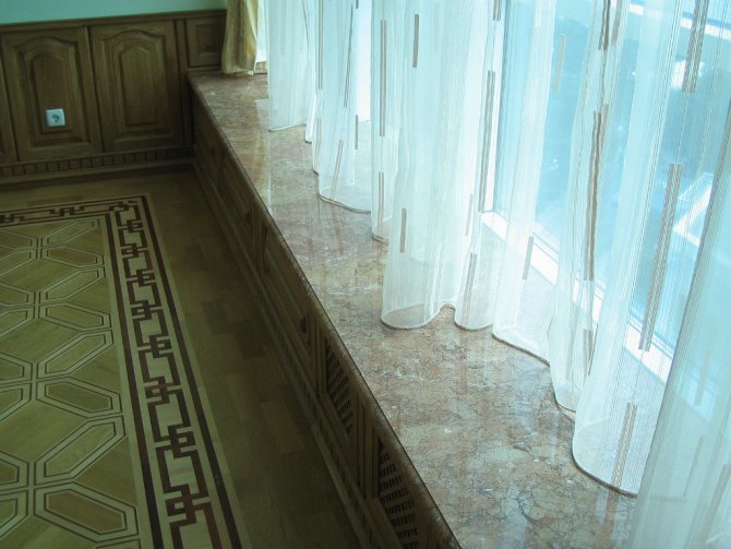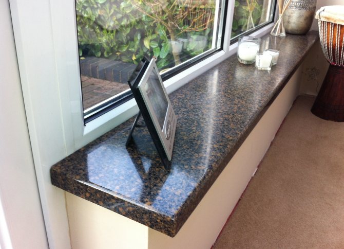 Produits en pierre naturelle et artificielle. Comme avant, et maintenant, la pierre reste également un matériau populaire dans la construction. Mais de tels appuis de fenêtre peuvent ne pas s'intégrer à l'intérieur de votre pièce. Ce n'est que lorsque tout est correctement sélectionné que les revêtements de marbre et de granit ajoutent de la solidité et du raffinement à la décoration d'une maison ou d'un appartement. Leur principal avantage est la durabilité et la fiabilité. Néanmoins, les appuis de fenêtre en pierre ne peuvent pas toujours être qualifiés de sûrs, car ils sont suffisamment lourds et radioactifs.