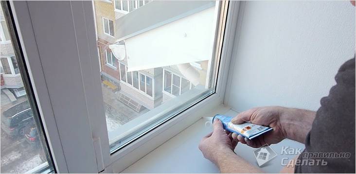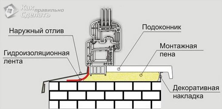 Noter. Parfois, dans une maison en bois, un rebord de fenêtre est planté sur de la mousse-colle et non sur un rouleau d'isolant. Dans ce cas, la mousse est découpée à la scie à métaux.