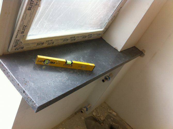 C'est un cas rare, mais parfois vous savez comment retirer un rebord de fenêtre d'une fenêtre en plastique s'il est en béton. Par exemple, une telle combinaison de matériaux est possible si l'ancien panneau a été conservé ou si une nouvelle dalle de béton marbré a été installée avec une fenêtre en PVC (de telles propositions sont désormais pertinentes sur le marché des matériaux de construction).