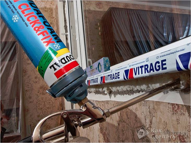 Astuce : pour que la mousse ne « soulève » pas le rebord de la fenêtre lors de l'expansion, mettez quelque chose de lourd sur la surface du produit pendant qu'il sèche. Il peut s'agir de bouteilles d'eau, de briques, etc.