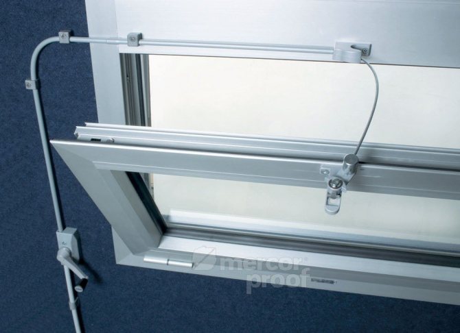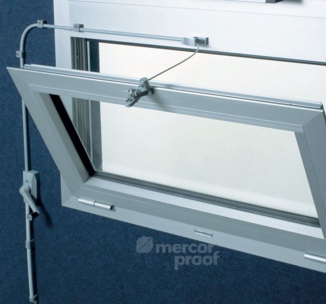 - dans un espace de bureau ou une vieille maison, il y a des rideaux hauts et, en conséquence, des fenêtres. Dans ce cas, il est physiquement impossible d'ouvrir la fenêtre sous le plafond sans escabeau;