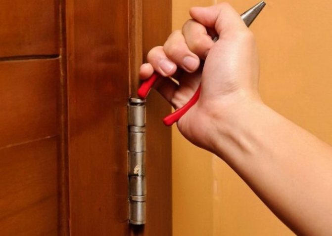 Habituellement, la porte est défoncée. Le moindre dommage est fait de cette façon. Vous ne devez pas utiliser d'outils à percussion tels qu'un marteau, ils feront bien sûr face à la tâche, mais ils peuvent conduire au fait que vous devez simplement changer le vantail de la porte.