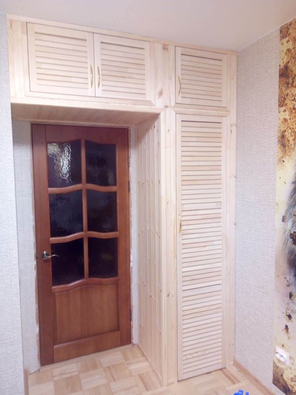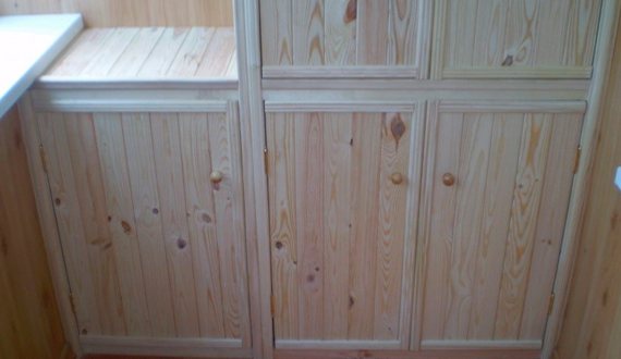 Les armoires peuvent être avec une porte à un vantail ou à deux vantaux. Tout se fait de la même manière que pour une ceinture. Et entre les portes au niveau de leur joint, des joints technologiques sont également insérés, qui sont ensuite retirés. Afin d'éviter un espace entre eux avec des portes doubles, une bande-bande est clouée sur l'une des moitiés de porte.