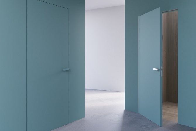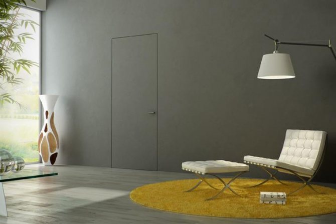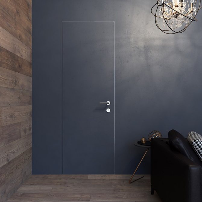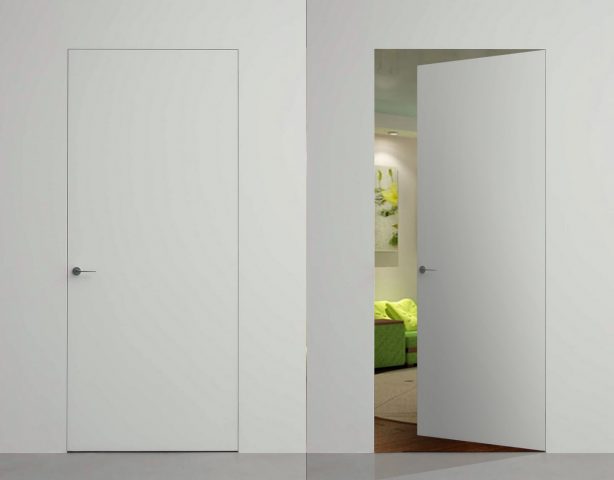 Le minimalisme se manifeste désormais dans tout, et cette direction est déjà fermement ancrée dans la conception des portes. Le plan des structures de porte sur la même surface que le mur semble réel. La sévérité est importante, ainsi que la pureté des lignes, ce qui peut souligner la sophistication du design.