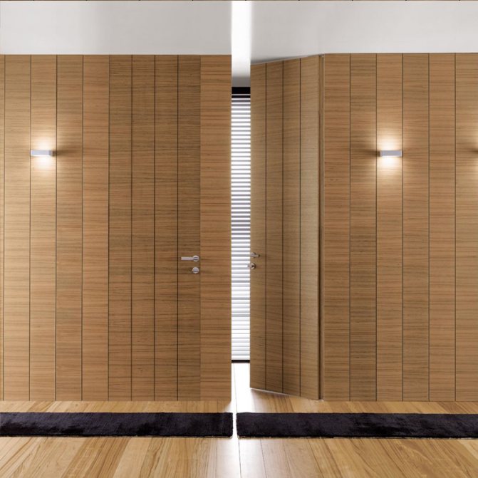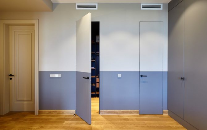 L'endroit le plus avantageux pour les portes cachées dans une maison est un couloir ou un couloir avec de nombreuses entrées et sorties. Lorsque vous remplacez les portes standard par des plateaux par des panneaux cachés, vous obtiendrez une pièce spacieuse avec des murs soignés sans accents inutiles.