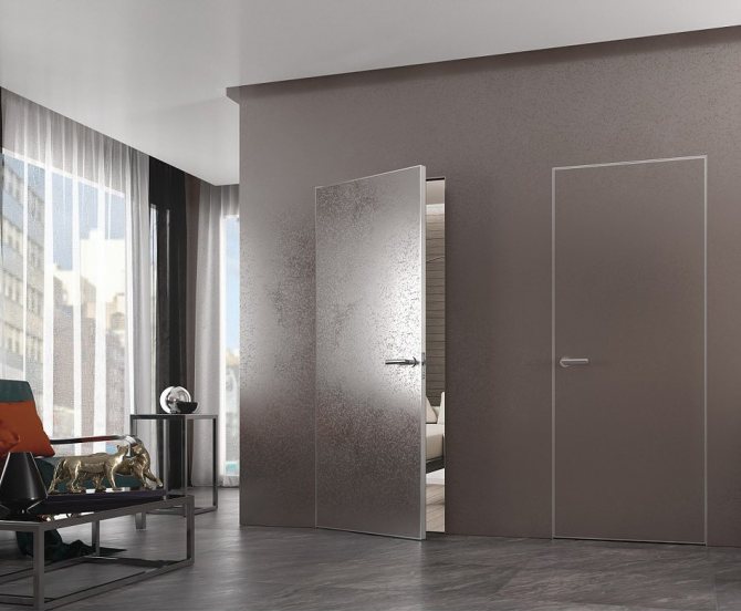 De nombreux objets à l'intérieur peuvent ne pas gâcher l'apparence générale de la pièce, mais ils limitent considérablement la perception visuelle. Plus il y a de portes dans la pièce, plus cette pièce a l'air limitée. C'est pourquoi les concepteurs ont proposé les vantaux de porte avec un cadre caché. Cette conception fusionne simplement avec l'intérieur. Le résultat est un look élégant et non conventionnel.