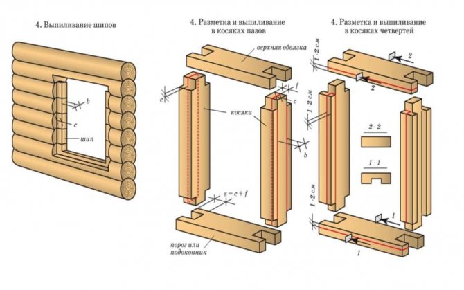La maison en rondins finie (boîte) ne doit pas être laissée sans ventilation. Par conséquent, coupez au moins un aliment pour avoir accès à l'air. Les dimensions de l'ouverture sont prises en compte en tenant compte de l'épaisseur du boîtier. L'ouverture est marquée de telle sorte que l'ouverture s'insère dans l'ensemble des bûches d'au moins un tiers du diamètre. Si vous coupez une couronne, la rigidité de toute la structure sera violée.