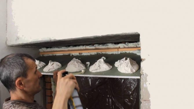 - S'il est décidé d'affiner l'ouverture avec un mélange décoratif, il est nécessaire de réaliser une finition rugueuse en utilisant du plâtre ordinaire. Après cela, toutes les surfaces doivent être soigneusement nettoyées avec du papier de verre fin. Cela évitera de décoller la couche de plâtre. L'utilisation d'un niveau de bâtiment ou d'un fil à plomb permettra d'économiser du matériel de finition.