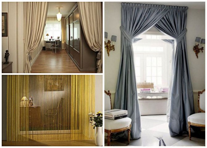 Vous pouvez utiliser des rideaux n'importe où, même au bord du couloir avec la salle de bain, bien que ce soit un peu intime, mais si les propriétaires sont intéressés par cette option, alors pourquoi ne pas expérimenter.