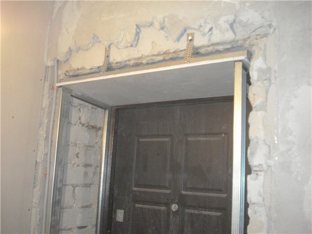 Cloison sèche sur le cadre La cloison sèche est une autre option pour recouvrir la porte, ce qui permet d'obtenir une surface parfaitement plane. Il ne nécessite pas de traitement supplémentaire, vous pouvez peindre ou coller le papier peint immédiatement après l'installation et le jointoiement des joints.