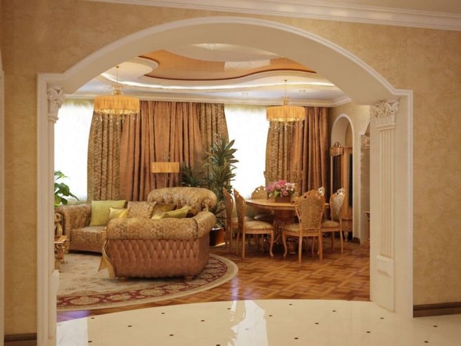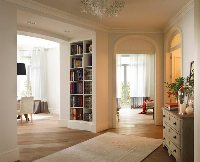 Une porte sans porte, avec une décoration compétente des deux côtés, peut sembler très attrayante et devenir un élément intégral d'une idée de design et un point culminant du design pour deux pièces à la fois.