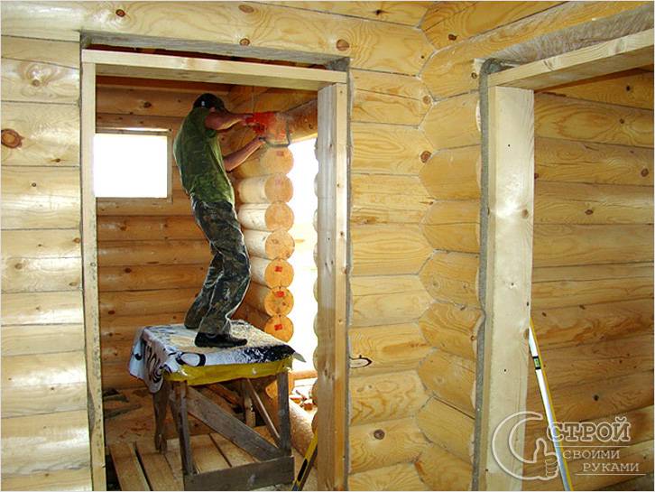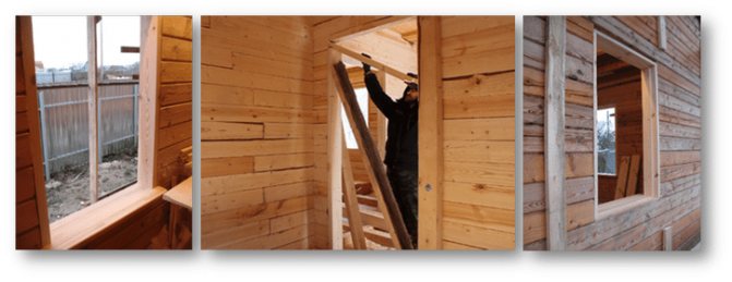 - Au moment du séchage, le bois dans la partie supérieure de la structure serre les cadres de fenêtres et de portes, si vous installez les fenêtres et les portes à l'avance, sous charge, elles se déformeront et se coinceront certainement. Pour éviter cet incident désagréable, faites une fenêtre - un dispositif mobile d'ouvertures se déplaçant le long des rainures simultanément avec la structure du mur, cela empêchera la déformation.