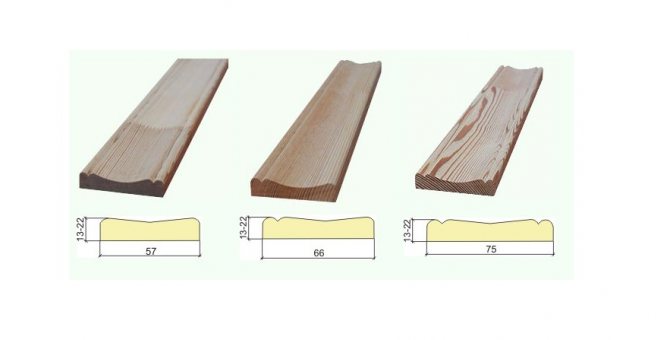 Les produits modernes ont un peu "grandi" et leur largeur moyenne est maintenant de 70 à 100 mm - ces plateaux sont le plus souvent fabriqués à partir de MDF et de plastique. Pour la plupart des portes intérieures de 800 à 900 mm, c'est un indicateur parfaitement acceptable. Et dans la fabrication de produits en bois, les fabricants essaient de respecter les exigences de GOST - ils produisent des moulures d'une largeur de 75 mm, sans toutefois faire référence au type de profil.
