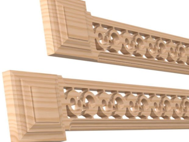 - La version en relief a un design plus intéressant. Pour la concrétisation de l'idée de conception et le transfert maximal du relief, ils utilisent des essences de bois précieuses, ce qui augmente considérablement le coût du produit fini. Le dessin peut être réalisé sous la forme de rayures longitudinales, couronnées aux angles d'un chapiteau ou de carrés avec un motif distinctif. Ils ressemblent vaguement à de petites colonnes. Le relief est appliqué sur des fraiseuses spécialisées. Cela ajoute un peu plus à leur valeur.
