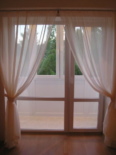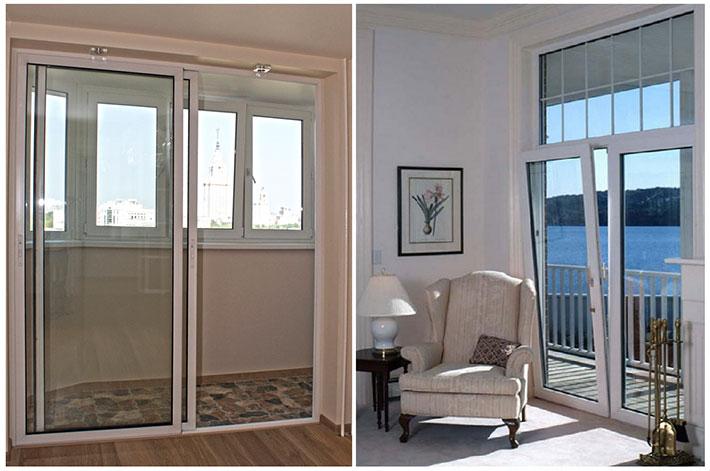 Plastique portes coulissantes basculantes en début d'ouverture, ils sont légèrement poussés vers l'avant, puis rétractés sur le côté, ouvrant complètement le passage. La partie mobile de la porte en position fermée s'adapte parfaitement au cadre, ne laissant pas la chaleur sortir de la pièce, elle est donc installée sur les balcons avec n'importe quel vitrage et même sur ceux non vitrés. La porte est installée en mode ventilation selon le principe utilisé dans les éléments de fenêtre. Le mécanisme fonctionne silencieusement et facilement.