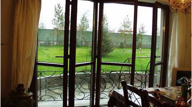 Les portes françaises s'adaptent sur toute la largeur de la sortie du balcon. Dans leur conception, il n'y a pas d'ouverture de fenêtre traditionnelle - elle est occupée par des portes. Dans le même temps, ils se composent de cadres entièrement vitrés et ressemblent à une immense fenêtre sur tout le mur. Ce type de porte est très inhabituel et a ses propres mérites.