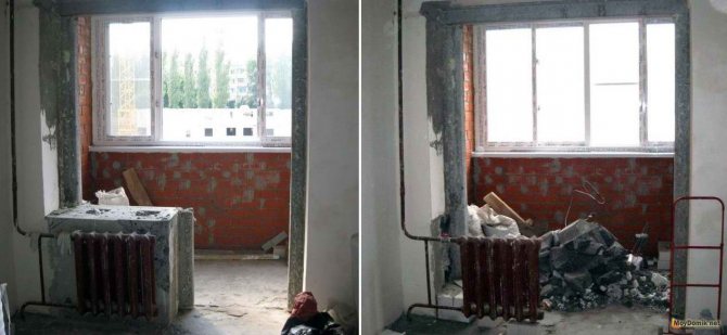 Si vous décidez de faire avec un peu de sang de construction et de retirer simplement la porte du balcon avec une fenêtre, il n'y aura aucun problème. Il est nécessaire d'organiser le passage de la bonne manière, si nécessaire, de monter des portes coulissantes légères, de transformer un morceau de mur sous le rebord de la fenêtre du balcon en un élément intérieur. Si le réaménagement nécessite la démolition des murs, les travaux sont longs et sales, et vous devez être aussi prudent que possible pour ne pas endommager la structure de la maison. Dans les maisons en briques, il est nécessaire de démonter la maçonnerie, dans les maisons à panneaux - pour éliminer le béton avec une scie-meuleuse ou un perforateur.