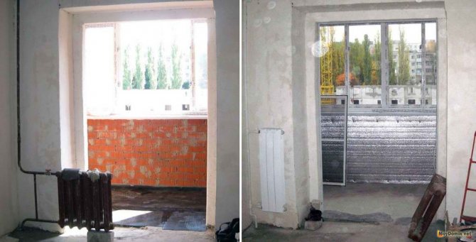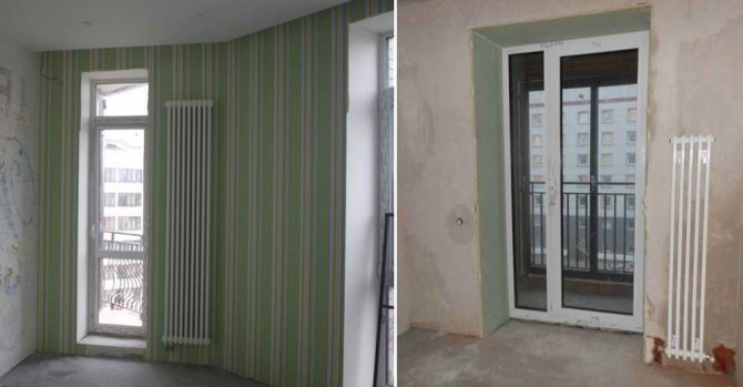 L'installation d'une porte-fenêtre au lieu d'un bloc de balcon standard se heurte à une autre difficulté, qui est la présence d'un radiateur de chauffage sur le mur du rebord de la fenêtre. Un tel endroit pour installer la batterie sous la fenêtre est dû à la nécessité de réchauffer l'air froid provenant de la rue. Après tout, une fenêtre est une source importante de perte de chaleur. Et non seulement une porte-fenêtre augmente la surface vitrée à travers laquelle la chaleur s'échappe, mais elle nécessite également le démontage du radiateur, ce qui crée un rideau chaud pour l'air froid entrant.
