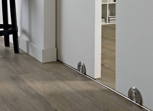 Les portes de ces systèmes à deux rails sont pratiquement exemptes de coincement. Mais le rail inférieur est également gênant. Vous pouvez trébucher sur ce seuil si vous ne le remarquez pas, et la poussière et la saleté s'accumulent à la place de sa fixation.