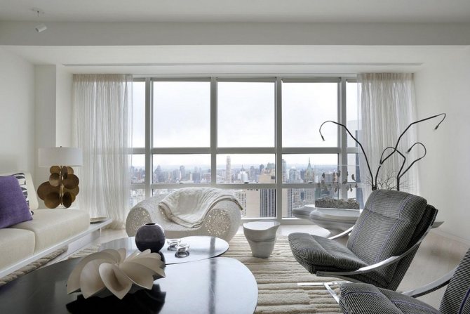 Le vitrage à la française panoramique du balcon et de la loggia s'accompagne parfois du démontage du rebord de la fenêtre afin d'installer une porte-fenêtre au lieu d'un bloc de balcon. De cette manière, l'effet maximum de l'espace ouvert est obtenu.