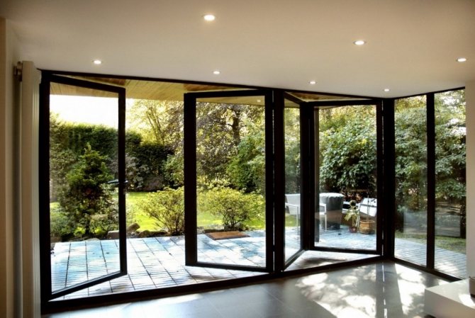 - "Porte pliante" - offre une large ouverture grâce à la possibilité de plier plusieurs vantaux.