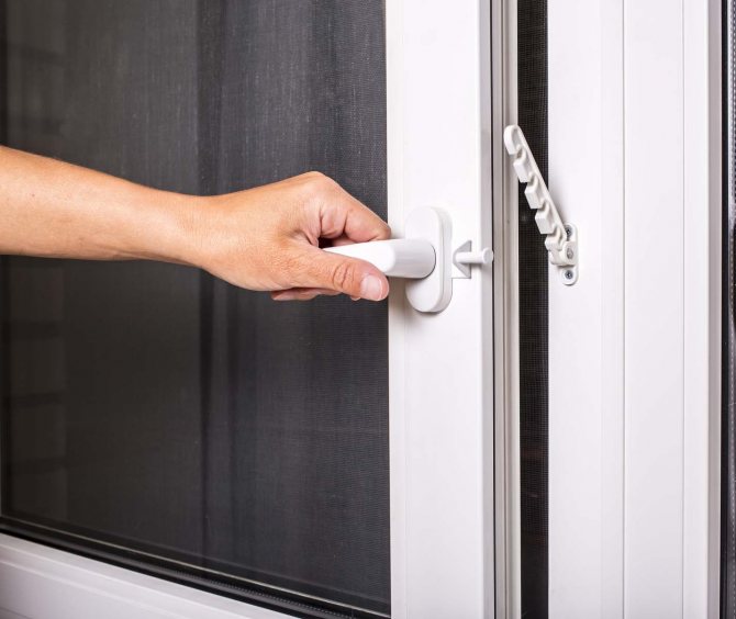 - dispositifs pour bloquer les feuilles. Il doit être fixé à partir du bas de l'ouvrant. Cela vous permet de le fixer dans une position, mais de laisser de l'espace pour la ventilation;