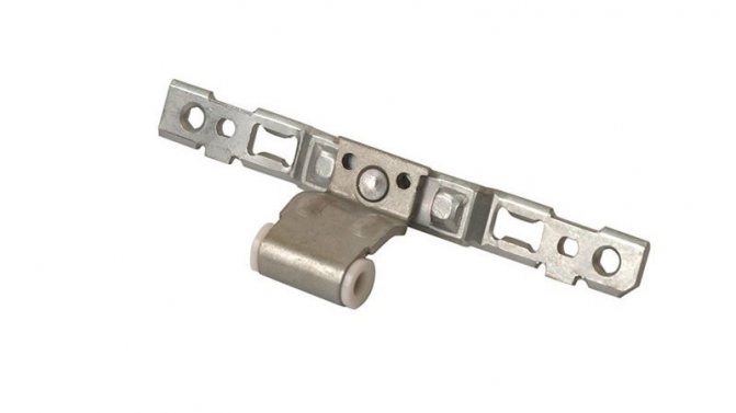 Le commutateur est installé à l'aide des fentes d'angle. Le mécanisme comporte deux éléments, dont l'un ne bouge pas. La partie mobile de l'interrupteur se compose de tourillons et de bandes, et la seconde se compose de 4 plaques d'acier.