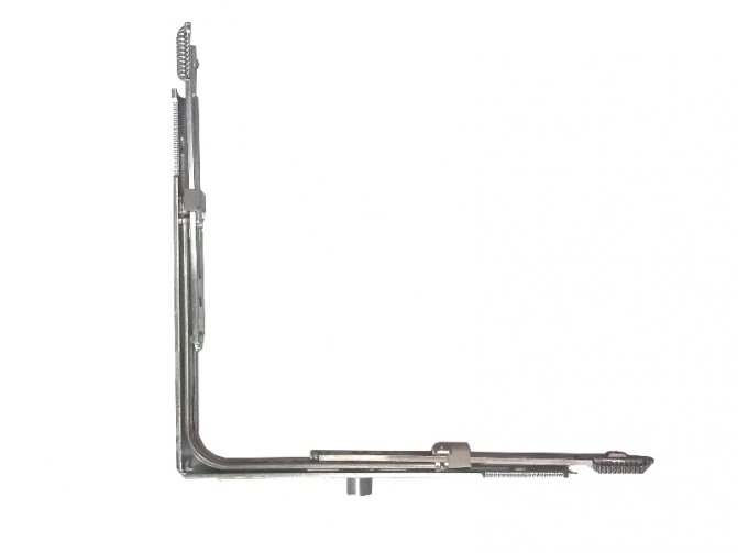 L'interrupteur d'angle est fabriqué en acier avec la flexibilité requise. Le matériel pour une fenêtre en plastique a reçu ce nom en raison de sa forme d'angle. Il est nécessaire de transmettre le mouvement du mécanisme de verrouillage.