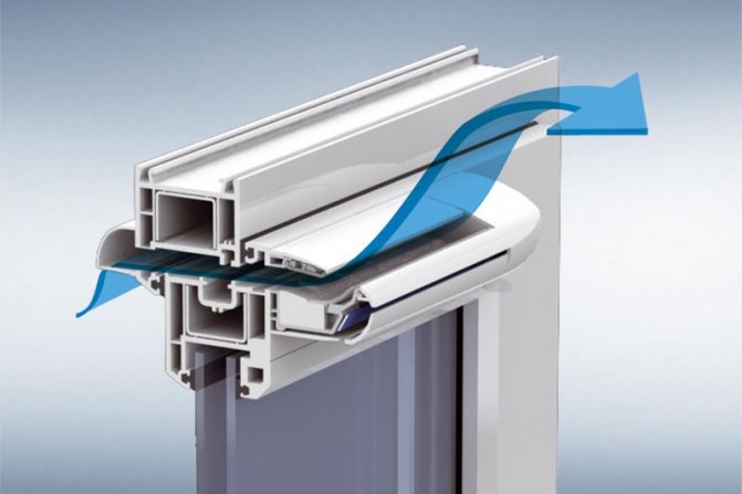 Pour cela, nous avons développé des ferrures avec possibilité de ventilation par fente - lorsque l'ouvrant s'éloigne du cadre de quelques millimètres seulement. Et les vannes avec ventilateurs sont des dispositifs qui sont montés sur le cadre et, lorsqu'ils sont allumés, fournissent de l'air frais dans la pièce.