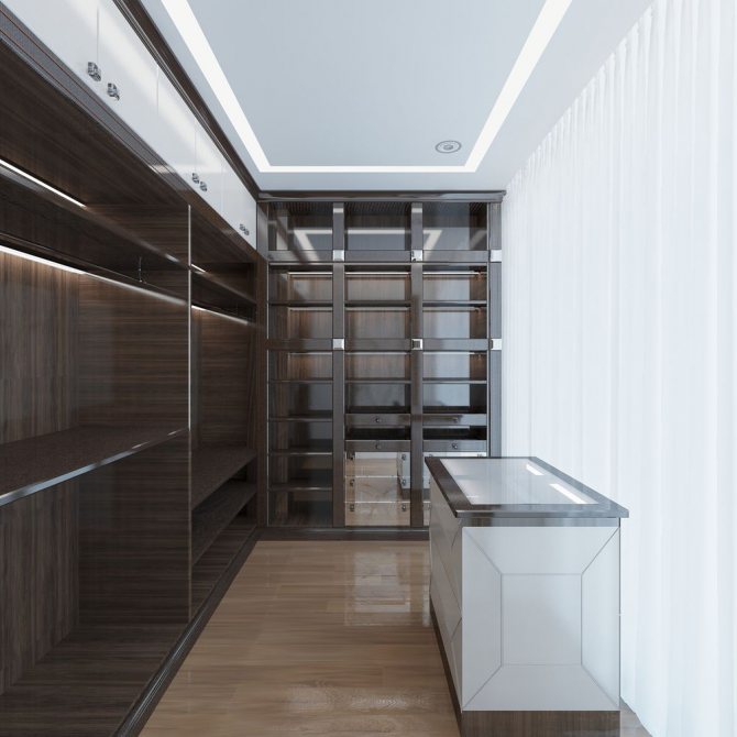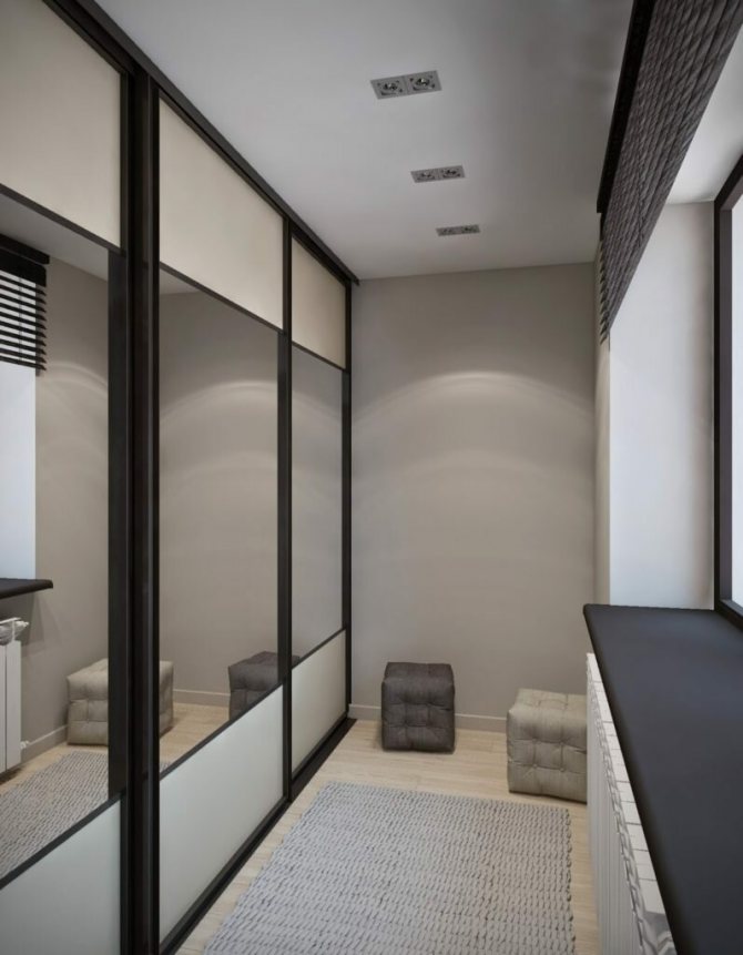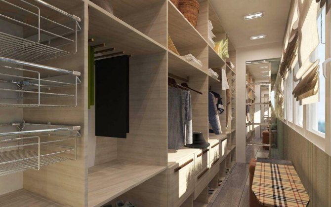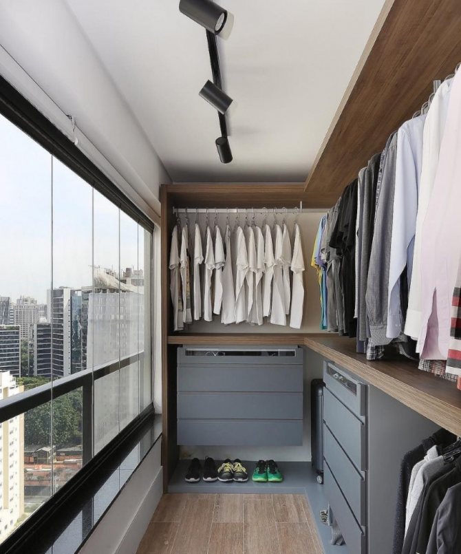 Dans la plupart des cas, une disposition linéaire du dressing est choisie pour un balcon ou une loggia.