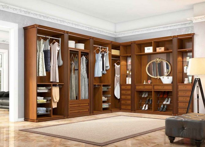 Armoire dans un espace-volume clôturé. Un tel espace séparé peut être construit dans la chambre en érigeant des structures porteuses.