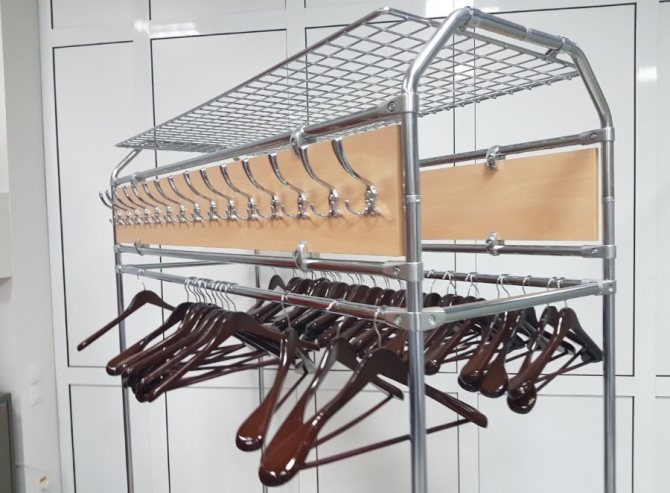 Une idée intéressante - une unité mobile compacte avec un cintre et des étagères