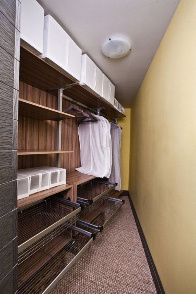 Avant de commencer à concevoir une salle de stockage, vous devez vous familiariser avec la photo du dressing de l'appartement afin de choisir la meilleure option pour vous-même à la fois en termes de design et de fonctionnalité.