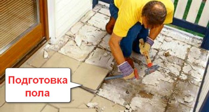 - la base du balcon est examinée et l'ancien revêtement de sol est démonté. Beaucoup de gens croient que l'humidité ne s'infiltre pas à travers le carreau, cependant, c'est une idée fausse. À travers les pores des carreaux de céramique, l'eau pénètre dans le béton. Un léger gel suffit pour que l'eau gelée commence à détruire la base. Pour cette raison, la tuile doit être supprimée;