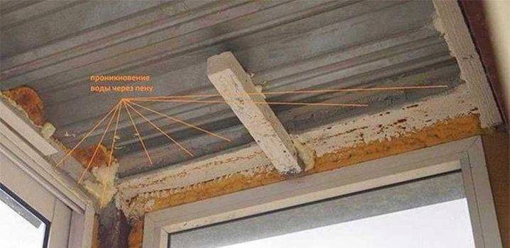 Habituellement, après l'imperméabilisation du plafond, l'état du vitrage du balcon est vérifié. Les cadres installés en violation de la technologie sont une cause fréquente d'humidité qui pénètre dans le balcon.