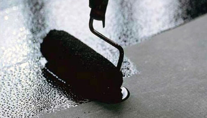 - au-dessus du sol, un composé imperméabilisant est distribué avec une brosse.