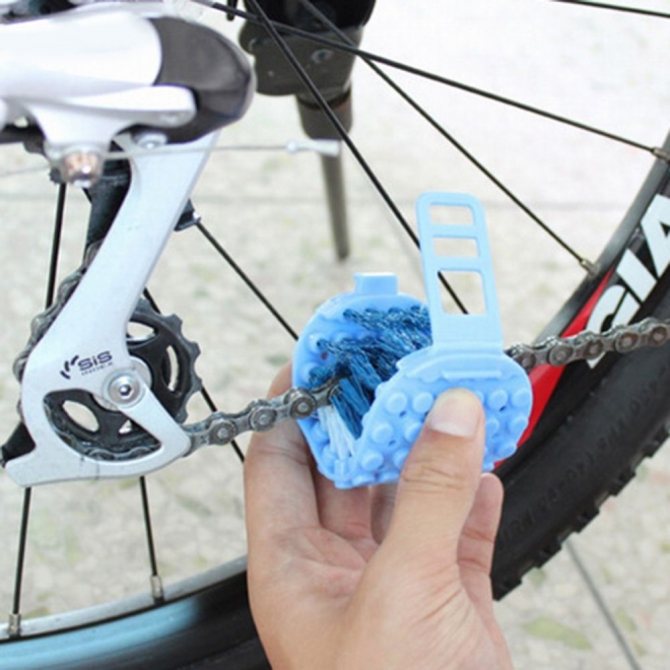 | La lessive | Ceci est une condition préalable. Nous prenons une brosse et brossons les morceaux de saleté de tous les interrupteurs, leviers de frein et moyeux de roue. Les zones tachées de graisse sont essuyées avec un chiffon doux. Pour nettoyer les pignons avant et arrière, le tendeur de chaîne, nous utilisons du kérosène, du white spirit, de l'acétone ou d'autres solvants de bonne qualité. Pour des économies significatives, les agents de nettoyage doivent être appliqués avec un vaporisateur et non versés sur un chiffon. |
