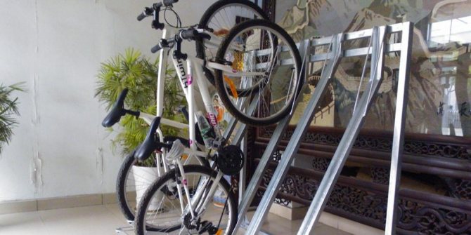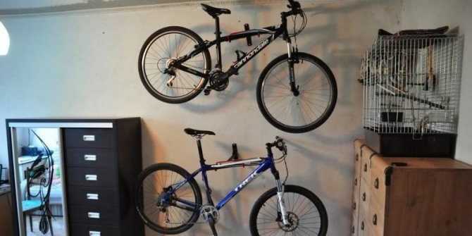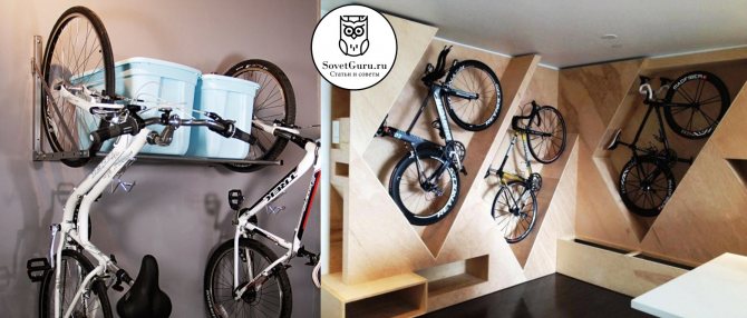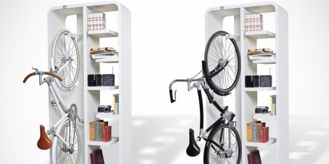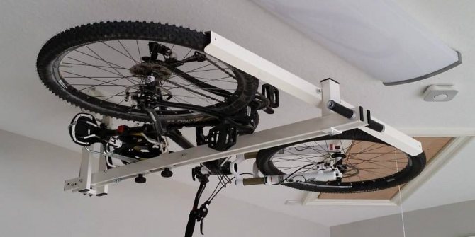 Intéressants sont ceux où la conception vous permet de placer le vélo parallèlement au plafond. Dans le même temps, même un décimètre de la surface utile du logement n'est pas perdu.